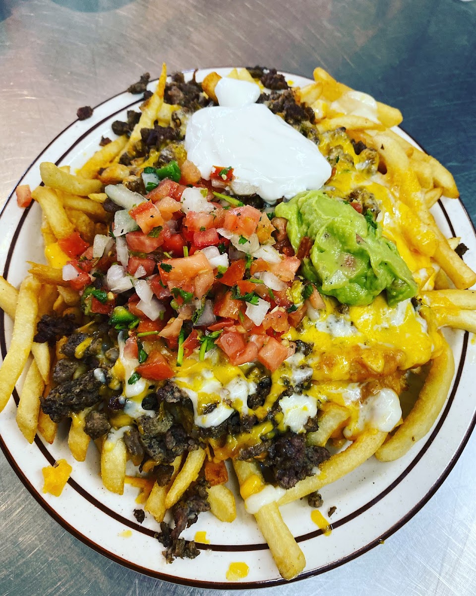 Typical burger stand except now it offers a combo with Mexican food. Always had good wholesome food. No five stars because it's noisy. TV is blasting soccer everytime I visit. Very hard to converse with the cashier. I have no choice but to take out. I go for breakfast mainly. Carnitas burrito is my favorite. Plenty of meat and the hot sauce is HOT!