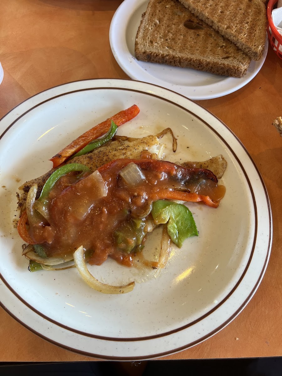 The steak fajitas were delicious. It came with 2 eggs and hasbrowns. The only problem was the coffee. It had a bitter funny taste. It was a little uncomfortable inside because there is no air conditioning.